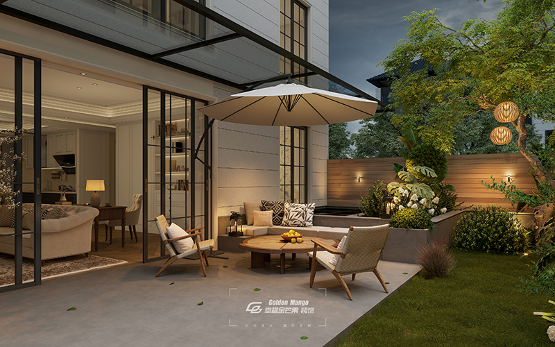 下躍戶型獨有的庭院,宛如一顆被精心雕琢的綠寶石,鑲嵌在生活的角落。木質桌椅在繁花綠蔭間靜靜佇立,撐起的遮陽傘仿佛是夏日的一片清涼蔭蔽。夜晚降臨,庭院燈串如螢火蟲般閃爍,與室內溫暖的燈光遙相呼應,勾勒出家的溫馨輪廓。