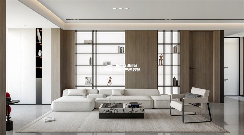 客廳是生活的核心舞臺(tái),這里將極簡的克制與生活的溫度完美融合。