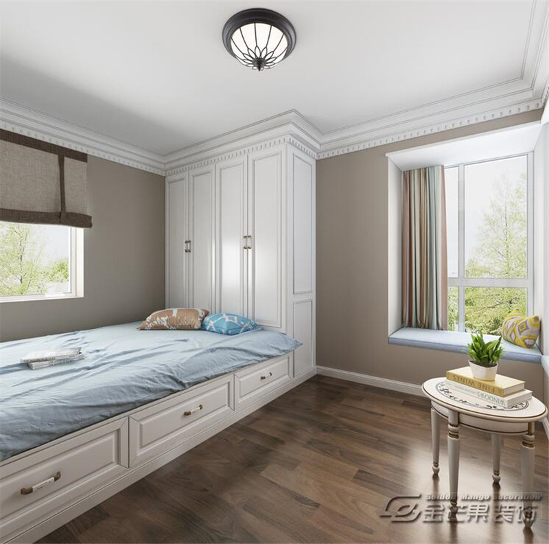 次臥榻榻米加書柜,要求簡單,盡量留出多的空間,使房間寬敞明亮。