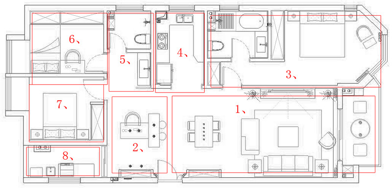 2、吧臺:設計師考慮到客餐廳比較寬闊,在原餐廳處增設輕食吧臺。