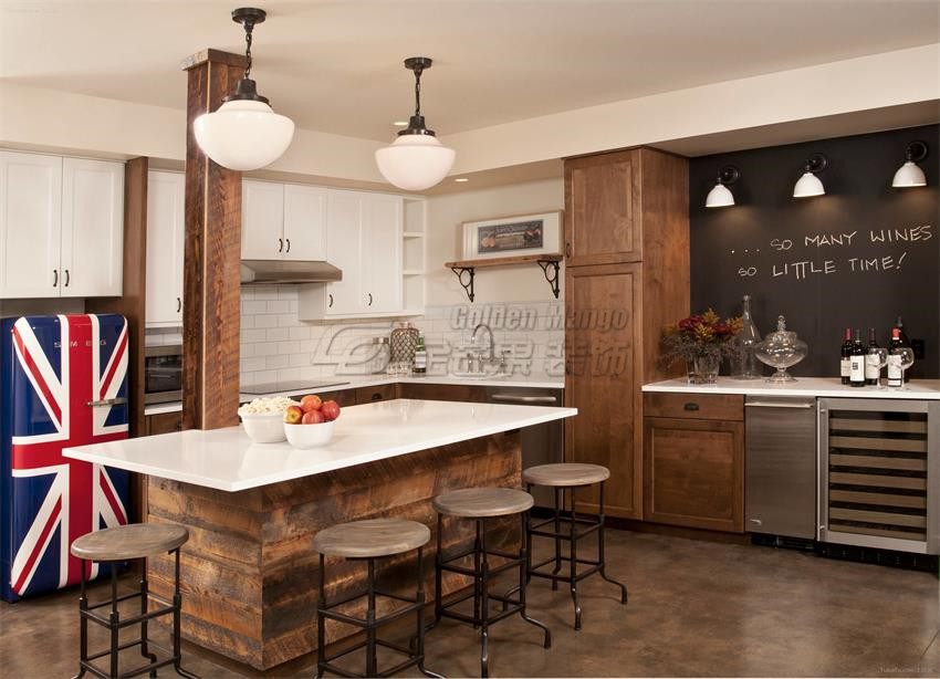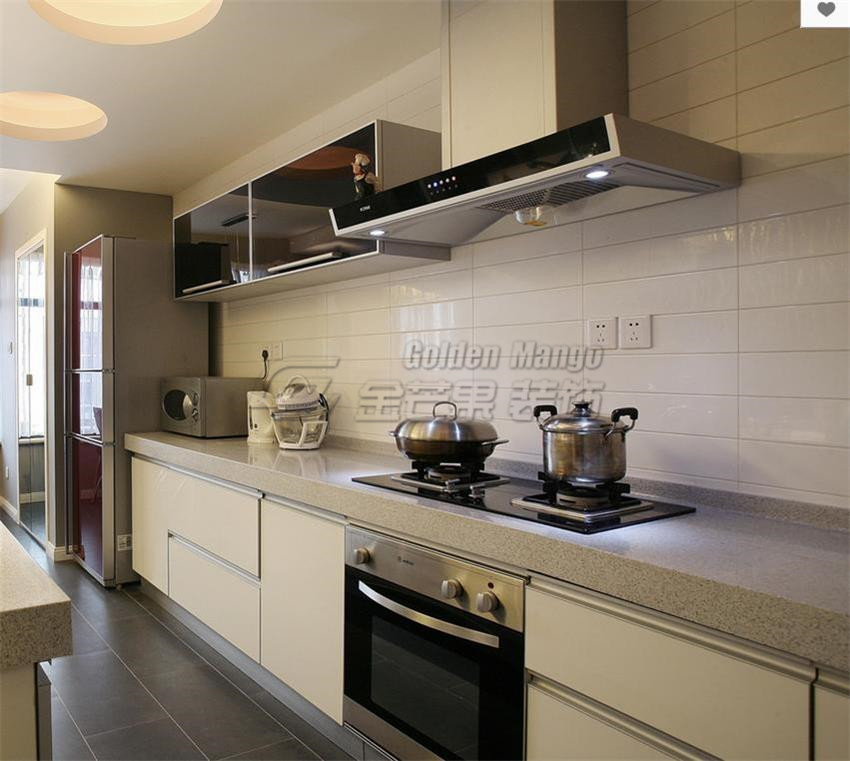 櫥柜要防水防火,櫥柜位置應先定下,廚房電器尺寸先量好,櫥柜門把手選擇大一點的,矮柜最好做成抽屜,推拉式。