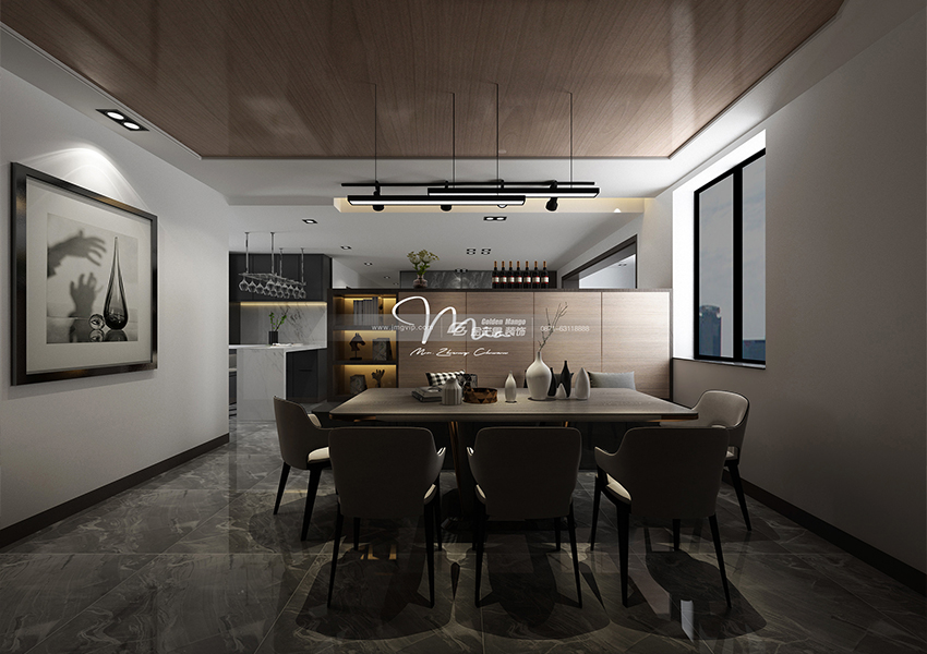 黑色的柜子搭配上乳白色的吧臺(tái)和滿目琳瑯的高腳杯,這也是一品酒中味的美妙,伴侶兩人幸福相擁的浪漫。