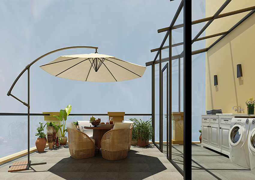 露天陽臺是家居生活的一大樂趣,享受大自然最美的風景,感受微微徐風的涼爽。閑暇之余朋友小聚、閑聊之所在。生活沒有多么復雜,愿得此陽臺足矣。