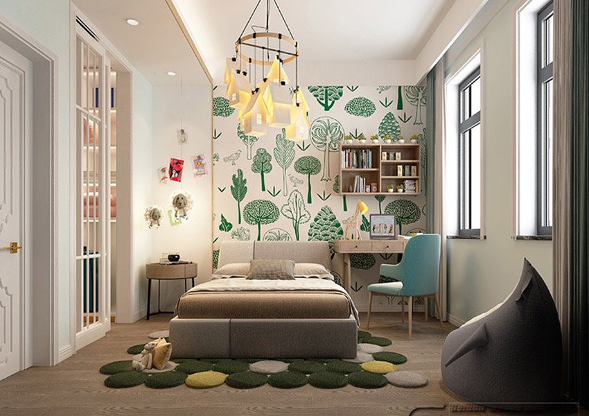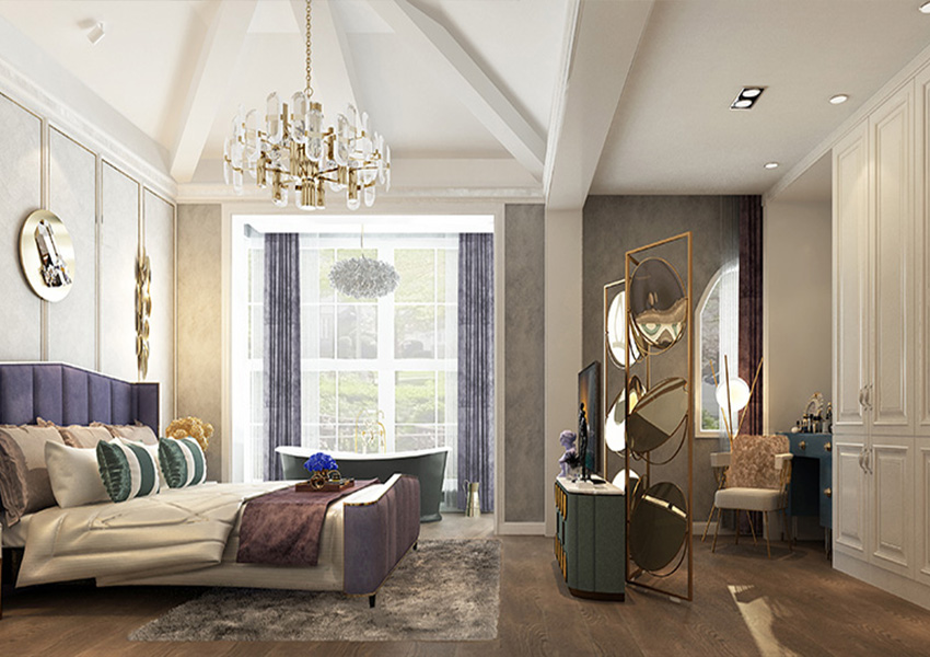 在主臥的設計上融入了北歐的元素,最貴、奢華彰顯無疑。地板是有質感的木質地板、設計感十足的吊燈。大衣柜為暢心所欲的衣物買單,落地窗感受著來自清晨的鳥語花香。