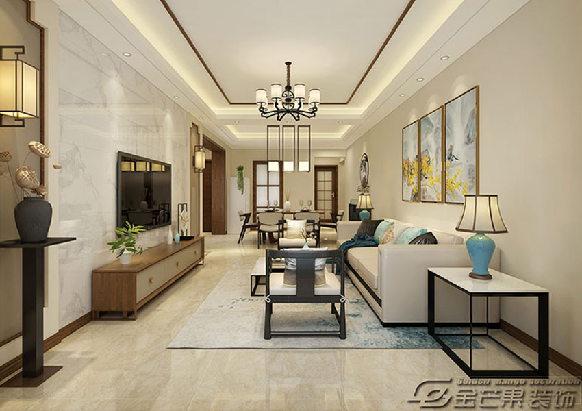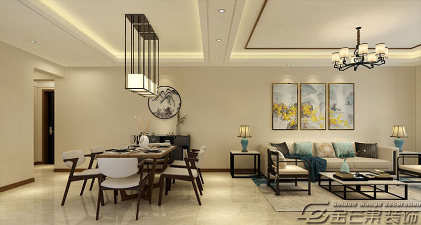這是一個110㎡設計風格運用新中式風格的案例,中式元素和現代元素相結合,清雅含蓄、端莊、實用是整體的感覺。燈也是設計的一大亮點。