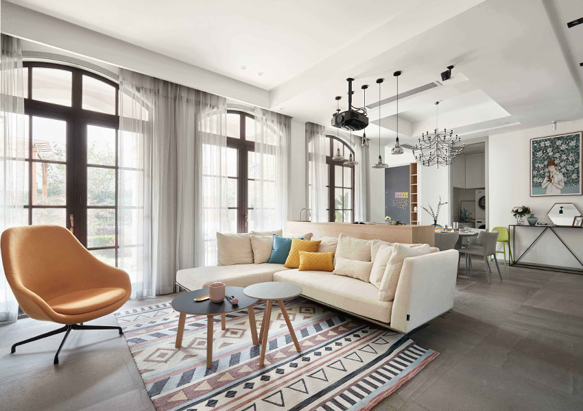 根據設計師的效果圖來選擇搭配,在硬裝方面,不該省的地方就不省,如水電、瓷磚這些。軟裝注重質量、舒適、和整體的搭配效果等方面。