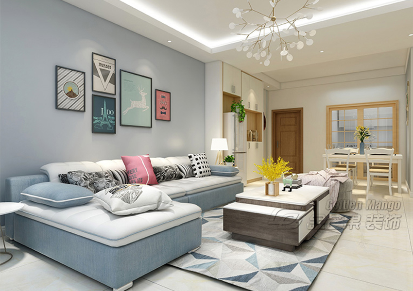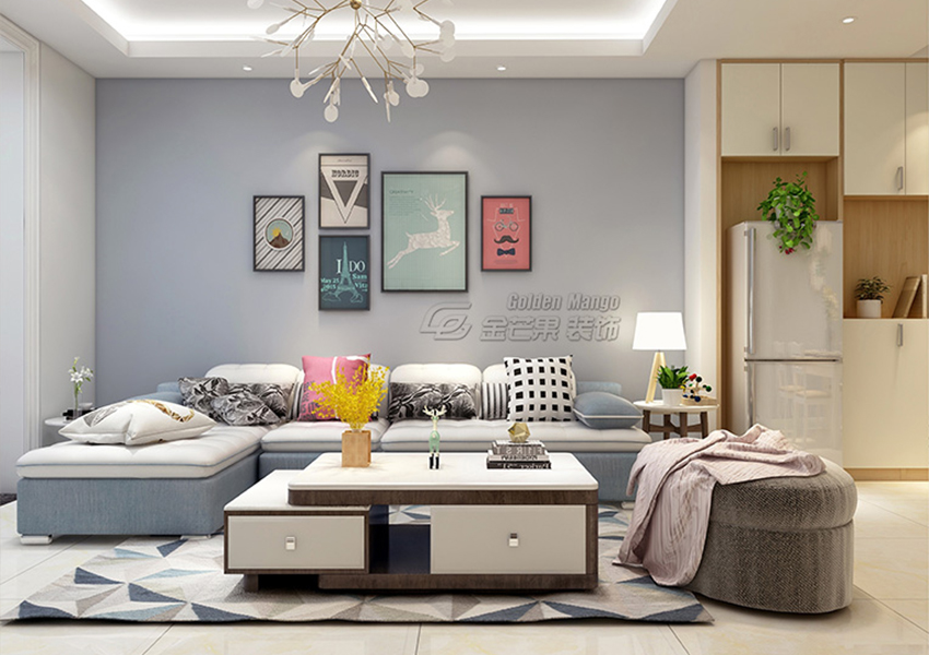 前衛、時尚、舒適成為承載客廳的動力,矩形的燈帶映襯整體的氛圍,壁畫上的“I DO”則是主人自信的表現,沙發上的抱枕則是最后的依靠。