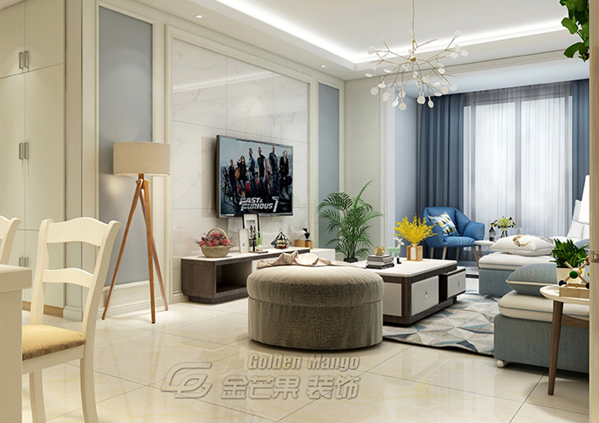 乳白色拼接成的電視背景墻盡顯奢華和高貴,還有設計感十足的吊燈,陽臺暖暖的椅子也是閑情雅致的歸所。綠植則是空氣清新的最佳搭配。