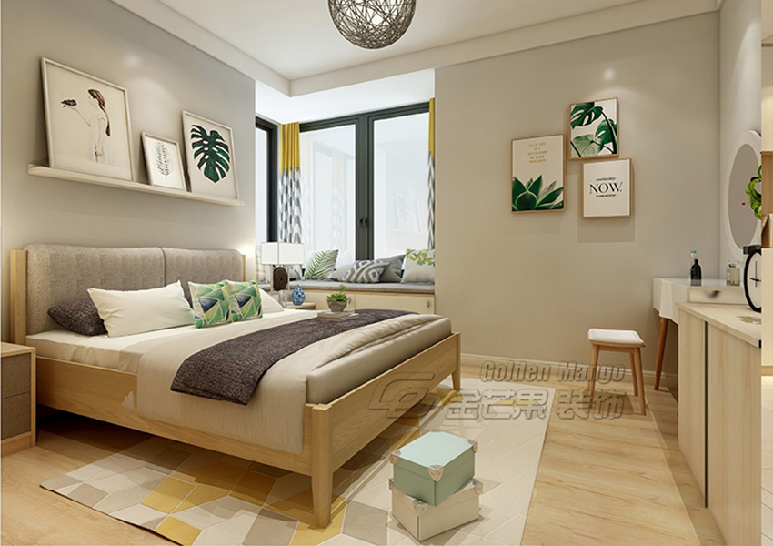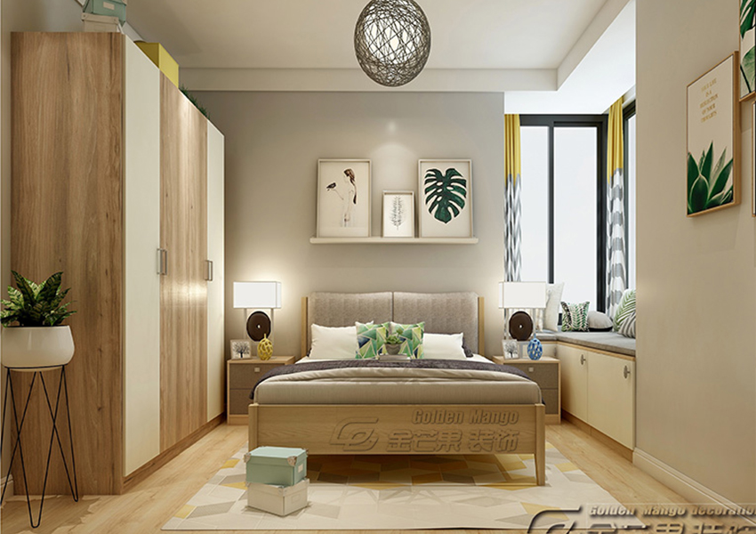 飄窗在設計師的設計下顯得那么喜人,整體上簡約和樸素,隨處可見的收納柜,為臥室的整潔貢獻著有生力量。