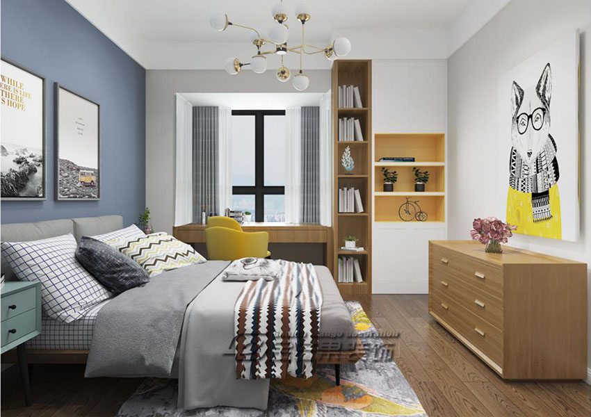 簡(jiǎn)潔舒適,在臥室的設(shè)計(jì)搭配上沒(méi)有冗余的元素,居家神器(儲(chǔ)物柜)也是一個(gè)底氣之所在,藝術(shù)感十足的壁畫(huà)盡顯文藝。不管是木質(zhì)的柜子、桌子、地板都顯得質(zhì)感十足。