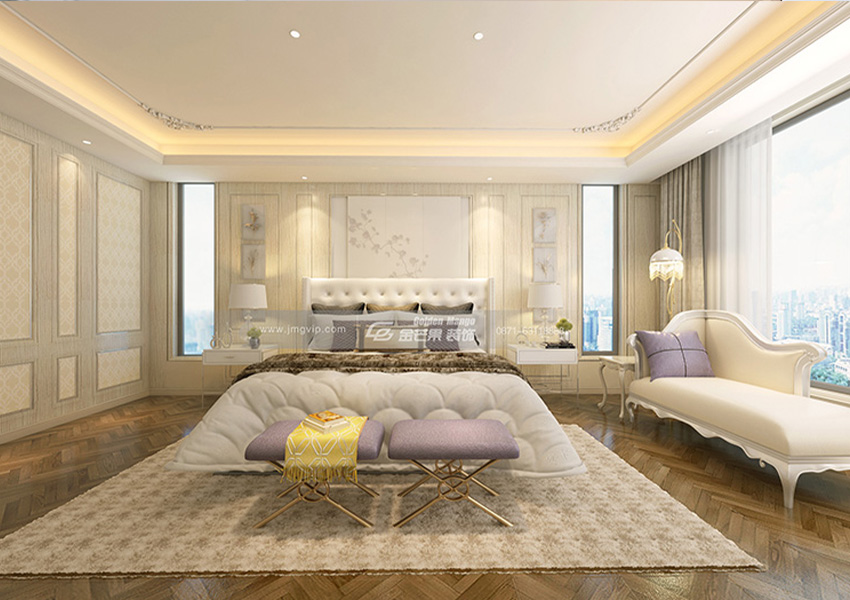 案例說明:這是一個運用簡歐風格的案例,摒棄了歐式冗余的裝潢,留有更多的視覺空間,視覺上更加寬敞、明亮。設計師對每個空間獨立的設計,有自己獨特的特色。在較大的空間下設計規劃的多樣性成為可能。整體奢華高貴,沒有過多的裝飾顯得尤為理性。以歐式獨特的白色系為整體色調,以燈光等元素渲染高貴、優雅的家居空間。
