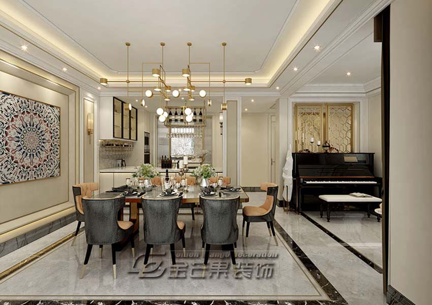案例說明:歐式風格和輕奢會碰撞出怎樣的火花,一個注重品質、實用性,一個偏重物質方面的。相互制約,相互平衡。運用大量的木材提升整體質感,各種燈具的搭配也是一大特色,巴洛克風格也在各個空間點滴透露著。色調上以白色為主,整個空間寬敞舒適。