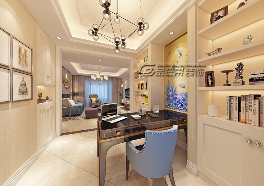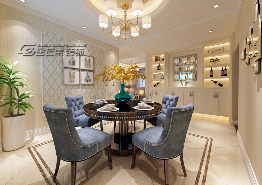 案例說明:這是一個(gè)運(yùn)用簡(jiǎn)歐風(fēng)格設(shè)計(jì)的案例,風(fēng)格典雅大方,色調(diào)上依舊以歐式當(dāng)中常見的白為基本色調(diào)。搭配上入眼柔和的錢藍(lán)色,實(shí)用性更強(qiáng)。在燈光的運(yùn)用上尤為突出,在吊燈的選用上更具特點(diǎn)。整體表現(xiàn)的舒適、典雅和端莊。