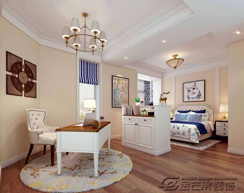淡雅,打造了一個屬于個人的私密空間,更好的使用空間,納入辦公和學(xué)習(xí)的地方,又不影響休息,一舉兩得。窗簾選擇顯得清新自然。臥室在燈光上極力的抑制,來保證好的休息,以淺色的窗簾來增加日常采光。融入更多的線條元素,大柜體,大空間帶來大的儲物空間。