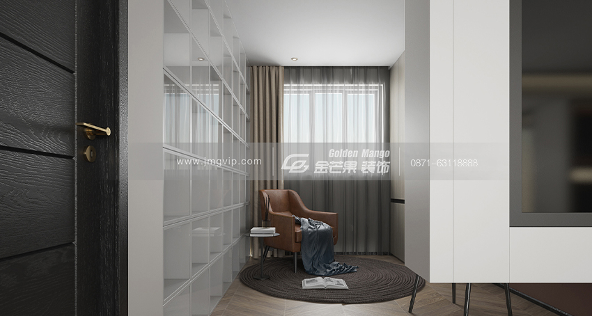 書房也能秒變儲物間,規格多樣的柜體和格子,儲藏著知識,也儲藏著日常用品,真皮沙發在看書時,更放心,也更安心。寬高適中的窗子為書房提供著充足的光線,電視背景墻隔開最大限度減少來自客廳的影響,沒有封閉的空間,使用上更加的方便。也驗證了實用性這一要點。
