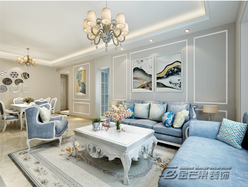 歐式風格裝修,寧靜、優雅的歐式情調,優雅溫馨,就像調了一杯藍色雞尾酒,顏色清新又充滿異域風情,空氣中仿佛都飄著醉人的甜香。