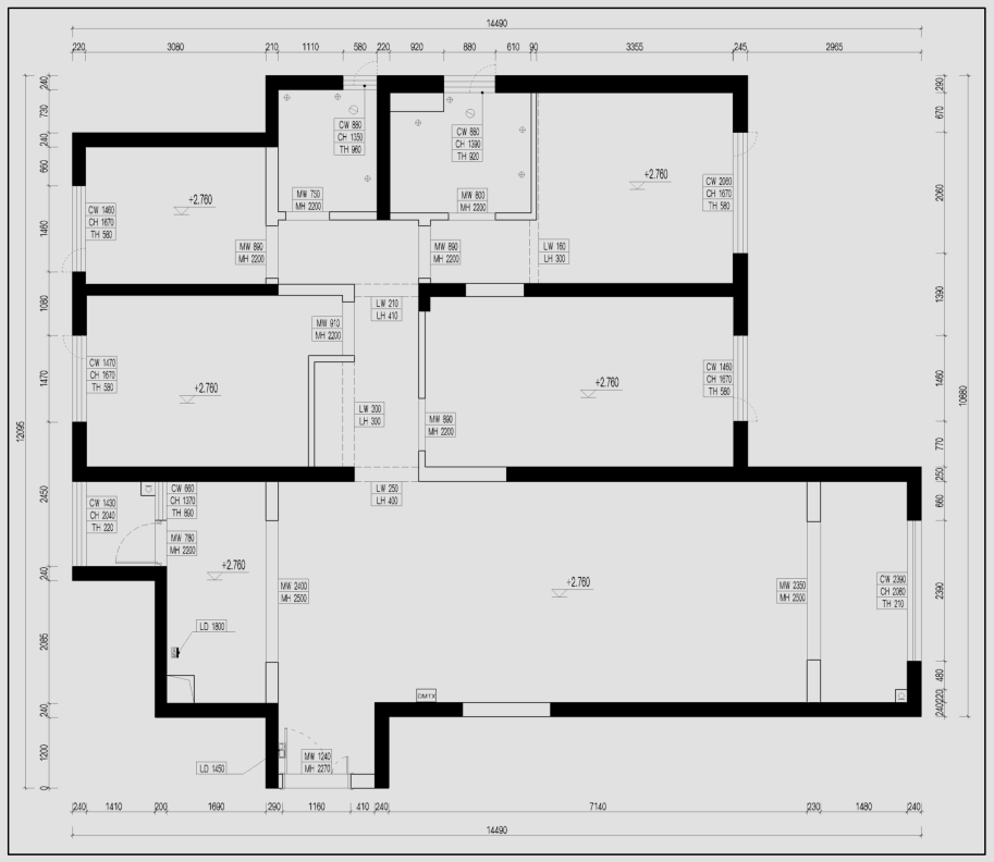 這戶業(yè)主家是一對老人、一對小夫妻、還有一個可愛的女兒,女主人一臉幸福的告訴我們,自己準備要二胎了,因此還想要保留四個臥室,另外,還想要一個書房。