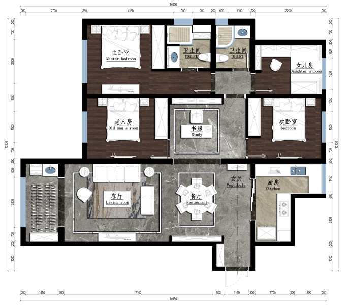 初見業(yè)主一家,2歲的二寶躺在媽媽懷里睡得香甜,7歲的大寶一臉天真可愛,老人和藹可親,夫妻兩人亦是知性文雅。交談后,業(yè)主一家希望家里可以裝修成現(xiàn)代輕奢風(fēng)格,不夸張,但是有格調(diào)。另外,除去必要的客臥衛(wèi),一家人還想要一間多功能房和儲物間。