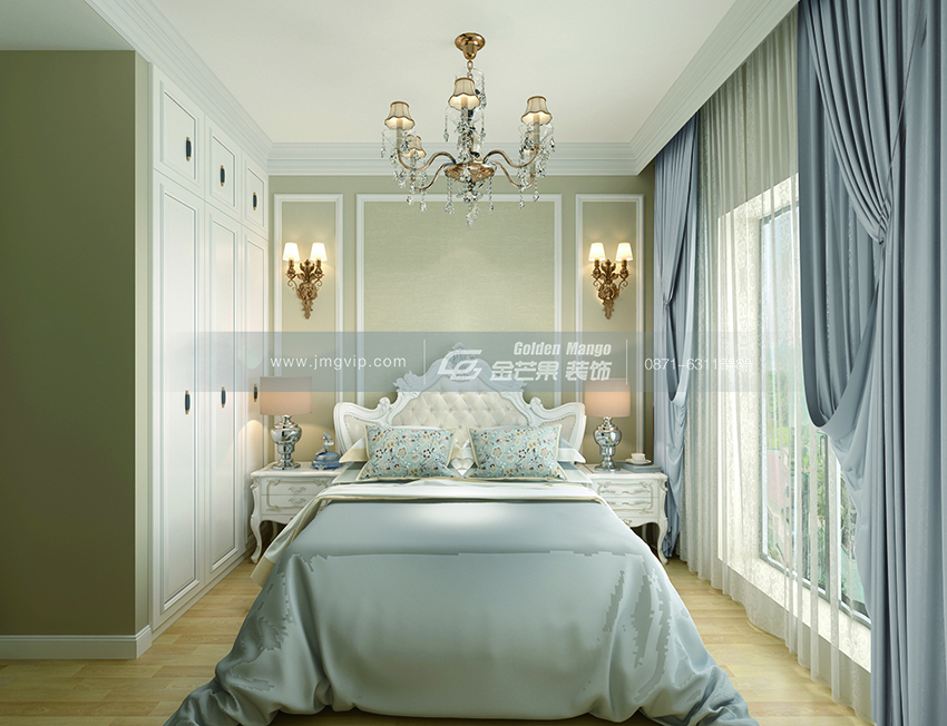 銀灰色的窗簾和被褥把奢華體現的淋漓盡致,晚上撫慰疲倦的身體,清晨傾聽鳥語花香。裝飾上以簡為主,選擇暖色系的燈光渲染搭配,這樣更能沉靜在夢鄉之中。