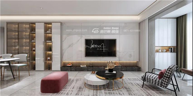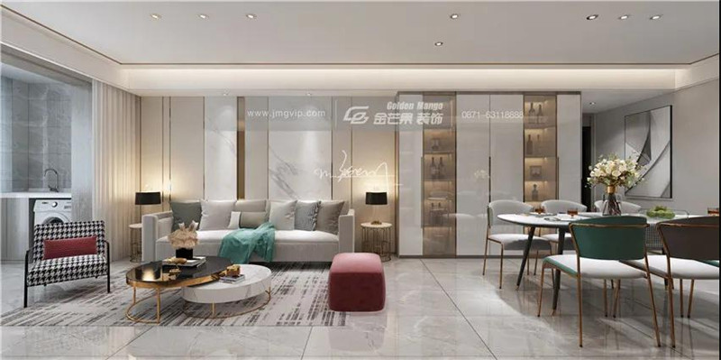 整體象牙白的顏色帶來通透、明亮的空間質感,大量石材的運用增加高級感。通透的白色中點綴紅色和綠色的家具,韻味盡顯。簡約而不簡單,每一處色彩的搭配和材質的選擇,都是業主生活品位的體現。簡約而不簡單,每一處色彩的搭配和材質的選擇,都是業主生活品位的體現。