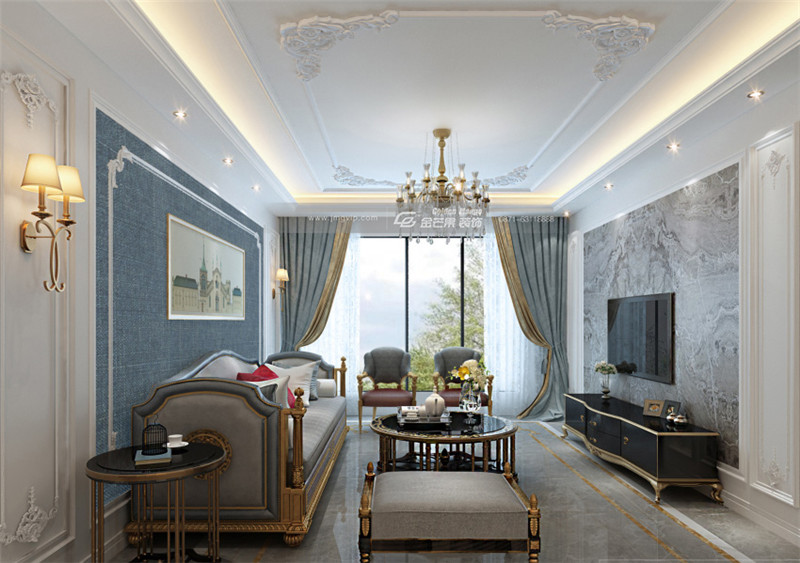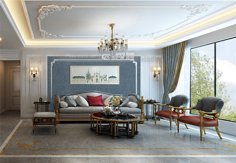 法式家具,搭配華麗的水晶燈,雕花的吊頂,墻上的裝飾畫,營造濃厚的法式氛圍。