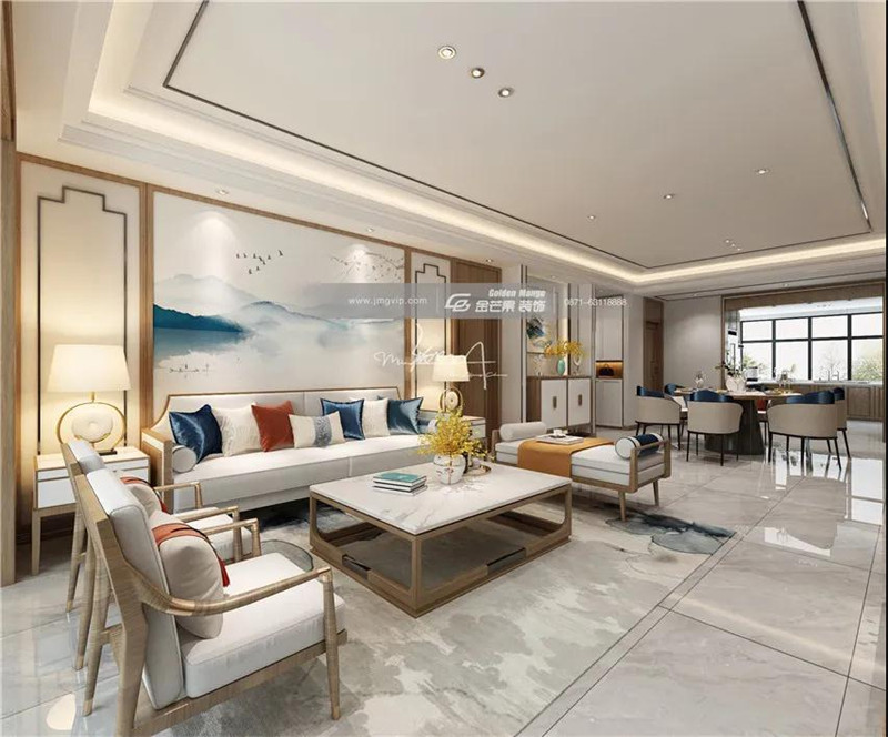 色彩淡雅,格調高雅,怡然雅致的家居,讓心靈在裊裊升起的茶香中得到沉淀和釋放。中式的家具、線條、裝飾,營造中國風美韻。