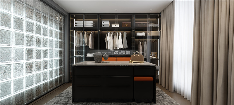 衣帽間的馬賽克和客廳相呼應(yīng),