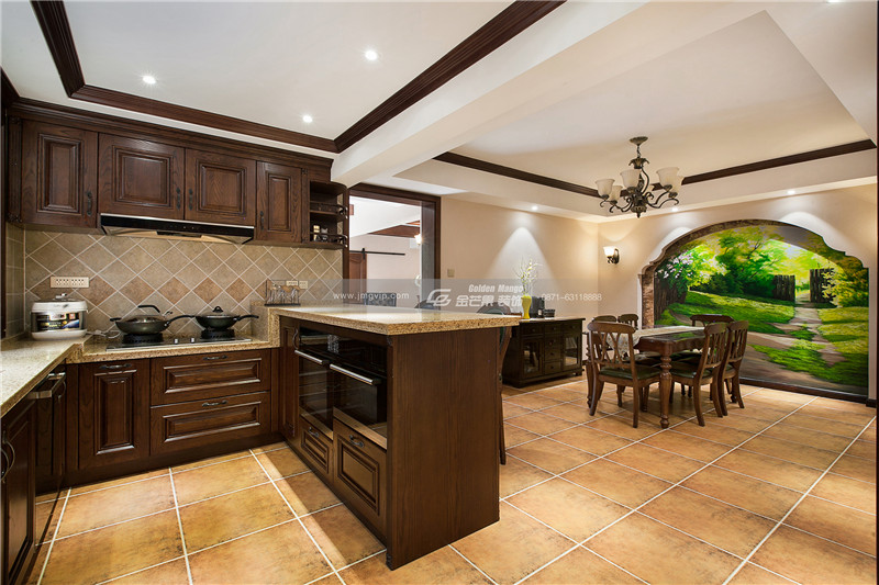 西式廚房寬敞簡雅,操作臺不同高度滿足不同身高需求。
