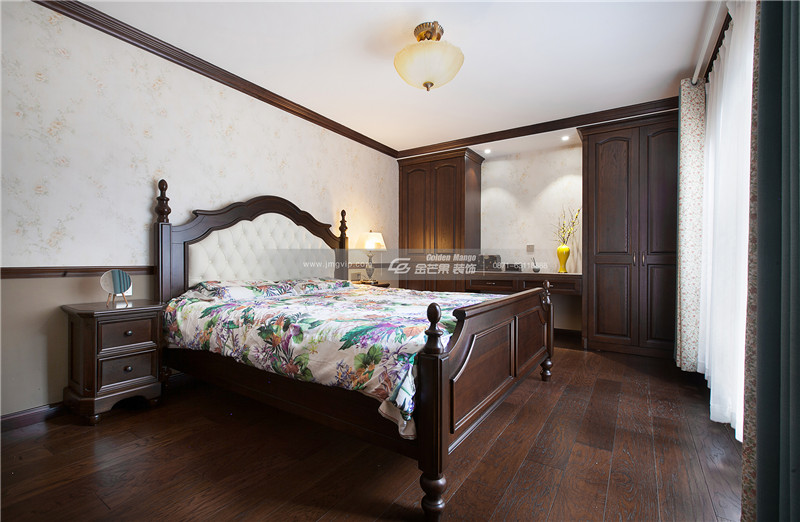 臥室不管是裝飾還是家具都繼續選用了大量的木材,復古氛圍濃厚,中間穿插的一些或溫馨、或時尚的裝飾、家具,也讓空間更豐富。