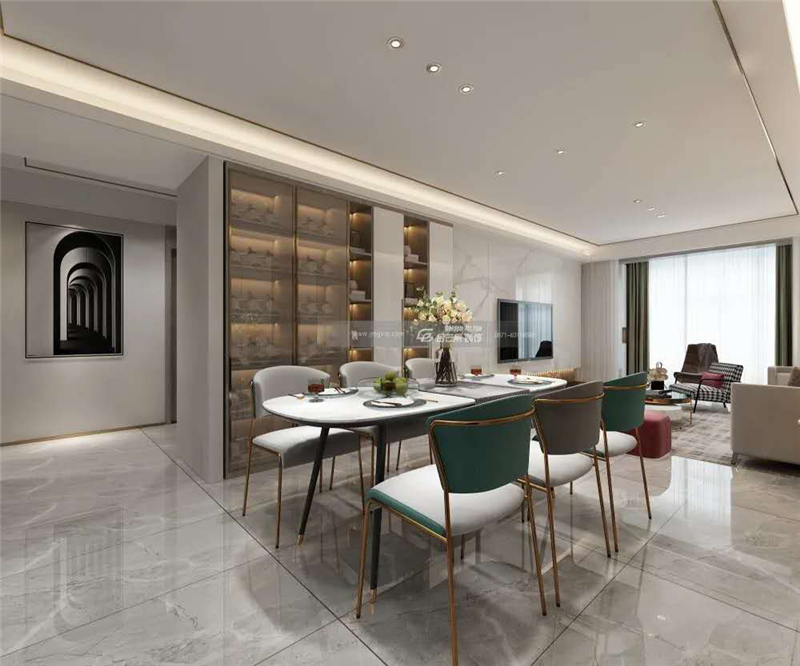 綠色的餐座椅和鐵藝搭配,既和客廳相呼應,也是精致、優雅、神秘魅力的展現;餐廳的溫度是一個家的溫度,餐廳與客廳風格協調融合,給精致的用餐空間許一份生活的美好。