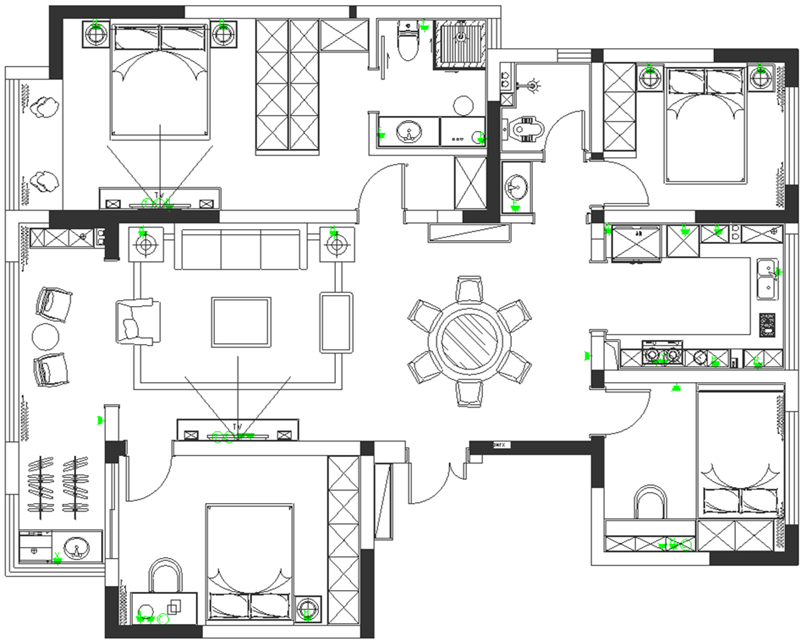 優(yōu)點(diǎn):戶(hù)型結(jié)構(gòu)方正,四室兩廳兩衛(wèi),帶有兩個(gè)陽(yáng)臺(tái),每個(gè)空間的采光及通風(fēng)都很不錯(cuò)。