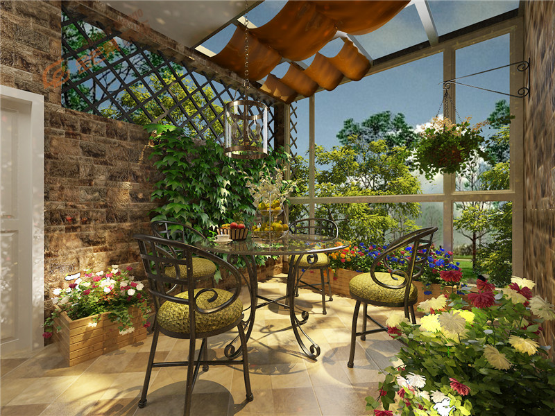 布滿綠植的陽臺搭配鐵藝的茶幾和椅子,非常具有歐洲風情。閑暇的午后,在此喝下午茶,陽光暖暖的灑在身上,咖啡和陽光的味道混合在一起,舒服愜意。