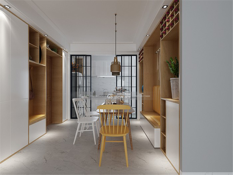 原木的餐邊柜搭配黑色的移門,自然氣息兼具現(xiàn)代時尚感。餐邊柜可以做酒架,又可以做展架,實用性和功能性兼具。