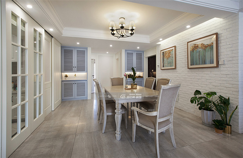 白色色調(diào)和通透的玻璃門,譜寫一曲浪漫的白色戀歌,餐廳不再是簡單的用餐場所,化身為家居場所里藝術(shù)和自由的代名詞。