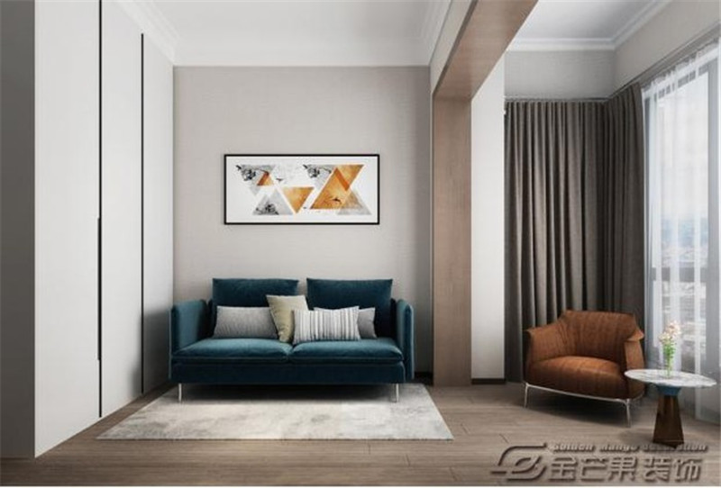 舒雅大氣,氣質卓然,沉靜溫暖的色調賦予家居無限的雅意。灰色的經典經久不衰,獨特的電視背景墻設計,讓家居生活更加個性滿滿。似有若無的群山似近在眼前,又寫意縹緲,藝術感滿滿。
