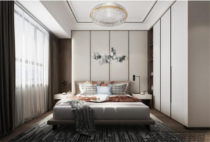 浪漫悠然的色調,帶來溫柔的氣質,臥室的溫柔和舒雅展現得淋漓,溫柔垂瀉的白色紗簾和銀色的裝飾,純潔靚麗,風姿綽約。