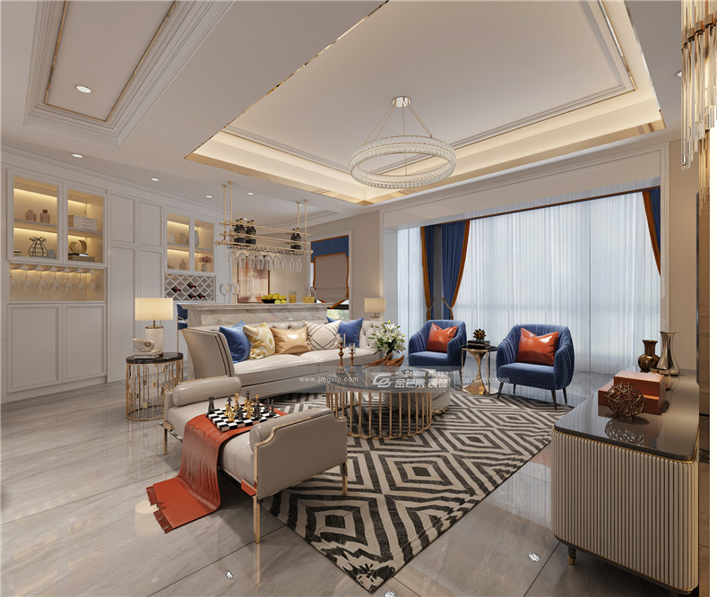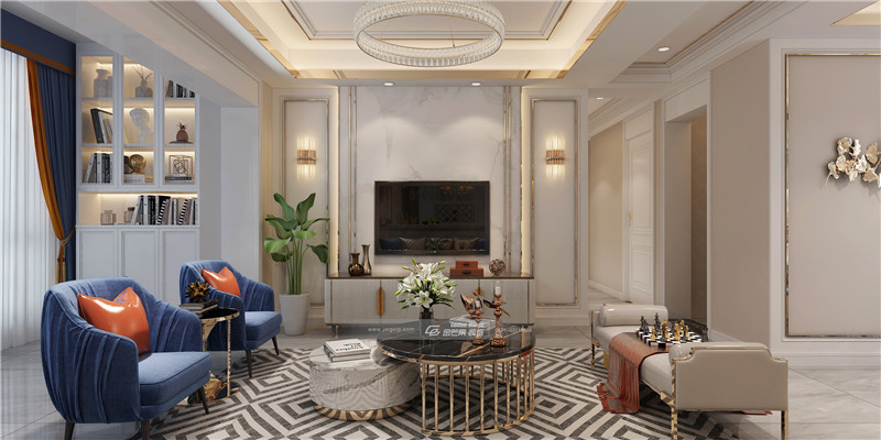 潤城五區136m2輕奢風格裝修丨只一眼,便墜入到優雅的藍色暢想里