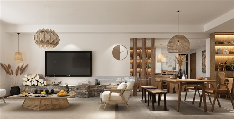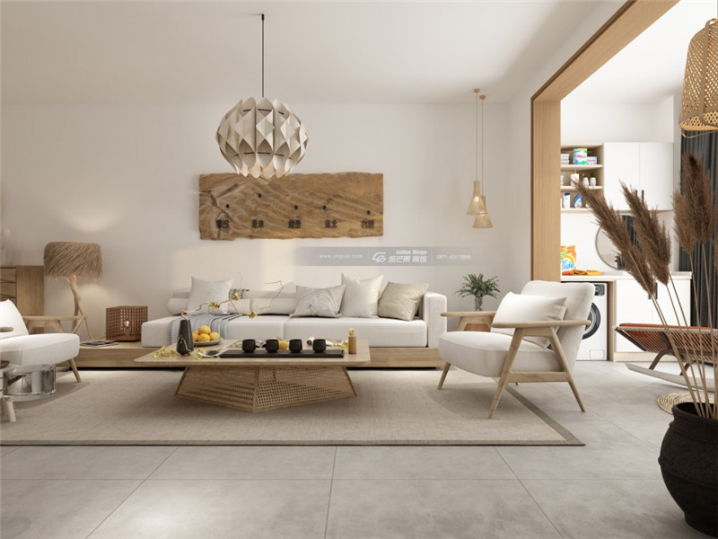 原木和簡約白色的結(jié)合,隨處可見的仿原始建材元素讓家充滿質(zhì)樸、清雅的氣息。燈飾、茶幾、時鐘充滿藝術氣息,展現(xiàn)返璞歸正的家居特色。