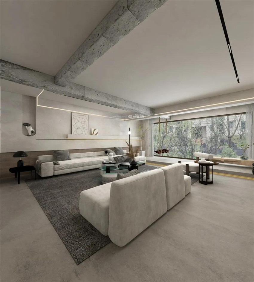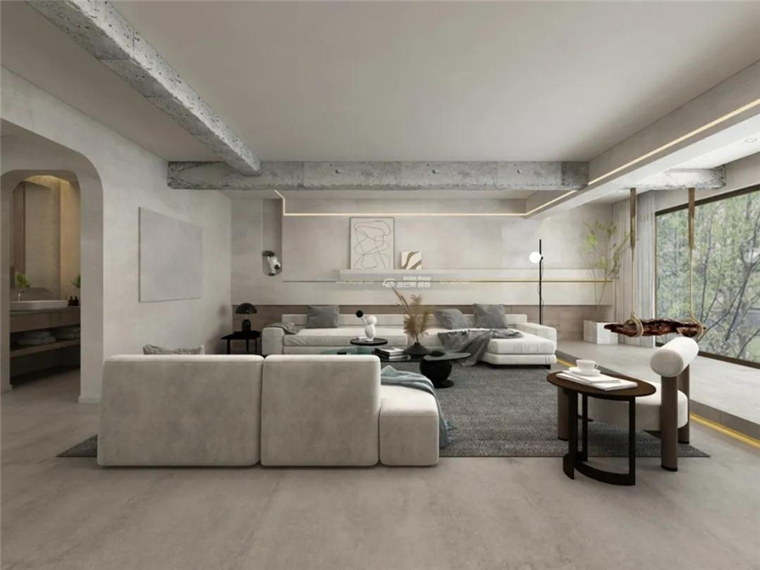 粗獷的仿原始建材和溫柔精致燈帶的結合,自然與時尚的碰撞。