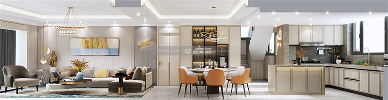 開放的餐廚設計,大氣怡然。有品質感的材質體現華麗優雅的空間感,明艷張揚高級的家居品質。