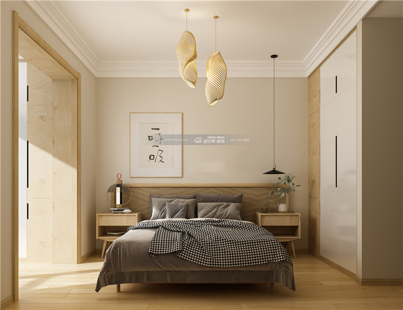 暖黃的色調(diào)和原木太搭了,淡雅穩(wěn)重的布局,中規(guī)中矩的方格直線,使得房間既實(shí)用又充滿別致感。柔和的色調(diào)傳達(dá)著一種純粹、本真的空間美學(xué)。