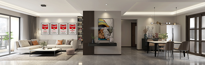 男業(yè)主喜歡收藏球鞋,特意在客廳一角開辟出一個球鞋的展架,將愛好融入生活,也是家居個性潮流特色的展現(xiàn)。沙發(fā)背景墻上的裝飾畫,紅色讓空間更顯格調且不會顯得張揚,和諧且點亮活潑的空間。