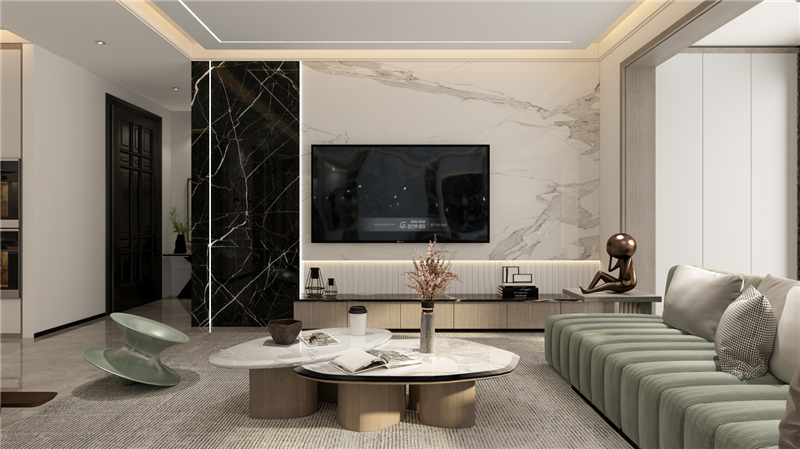 大理石電視背景墻,一黑一白兩色讓視覺有了重心,加上淺綠色的搭配,清新優(yōu)雅的氛圍打造沉靜的氣質(zhì)空間。