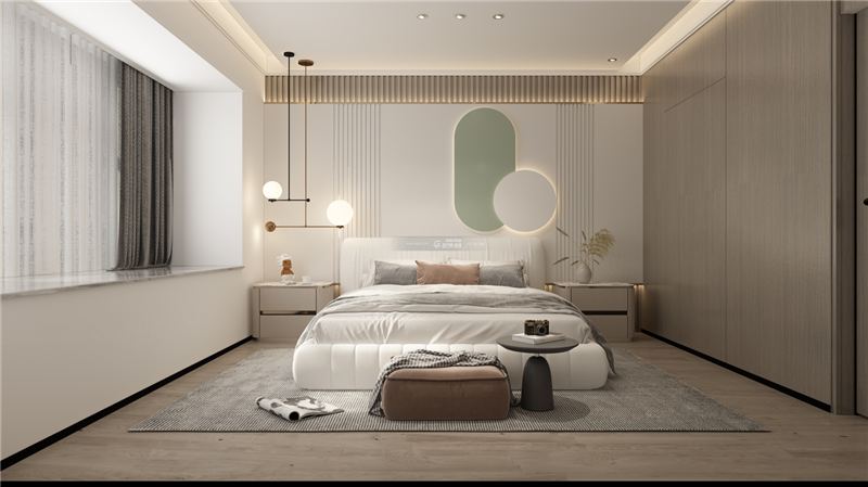 淺淺的綠色呼應(yīng)整個(gè)空間,淺淺的木色和溫柔的顏色搭配讓整個(gè)空間充滿溫柔、舒逸的氛圍,在這種簡約、清新的氛圍下,連夢都是軟軟的,甜甜的。
