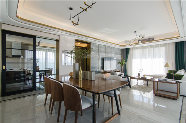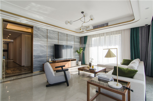 大理石背景墻,加入金屬線條點綴,輕奢的品質感讓家更加有儀式感。