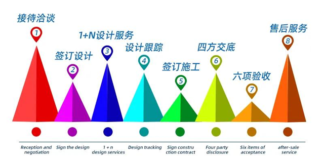 設計師均是5年以上經驗,,每年兩次考核淘汰機制。堅持人性化個性定制,1+N設計服務體系(1名主案設計師+2名助理設計師+軟裝設計師+材料專員+預結算審核員)。