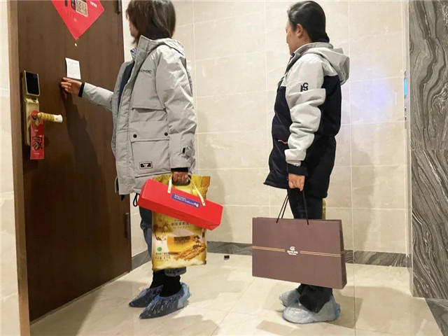 溫馨的房間,其樂融融的一家人,剛進門我們就感受到溫暖的氛圍。我們的工作人員給袁先生一家送去新年禮物,并收集解決入住中遇到的一些問題,為袁先生的幸福小家更添舒適。