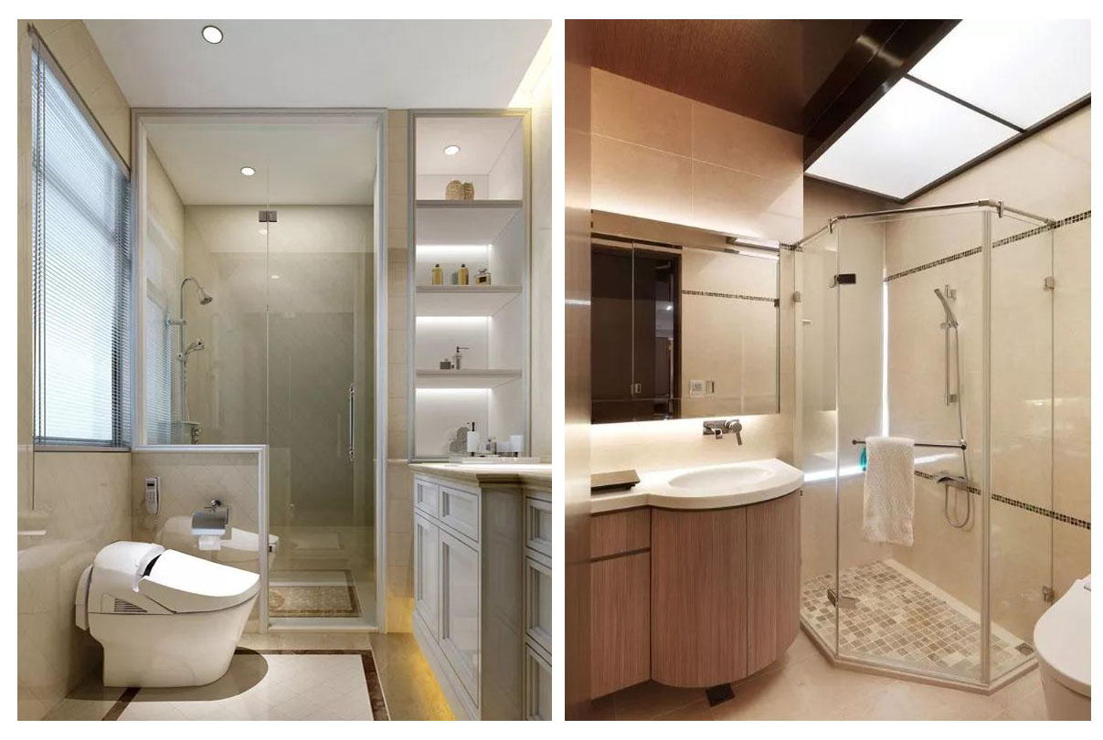 浴室內的空間狹小,往往顯得雜亂,但在墻面安置擱架,放置收納籃,在馬桶區轉角安裝金屬管放置毛巾,都能讓空間變得更寬闊,更整潔。