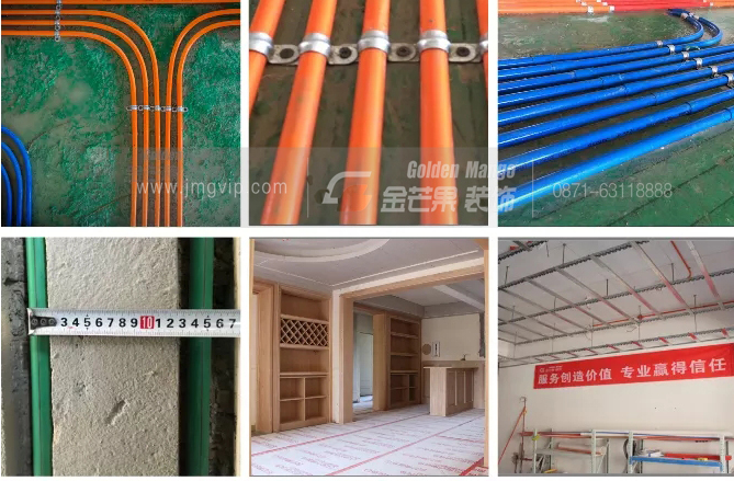 3、管線工程:水電施工,通過水電施工圖紙,選擇合適材料后,依照圖紙施工,在此階段需要多用心,管線的安全性要作首要因素來考慮,因為后期鋪裝后,再更改管線布局便十分困難.